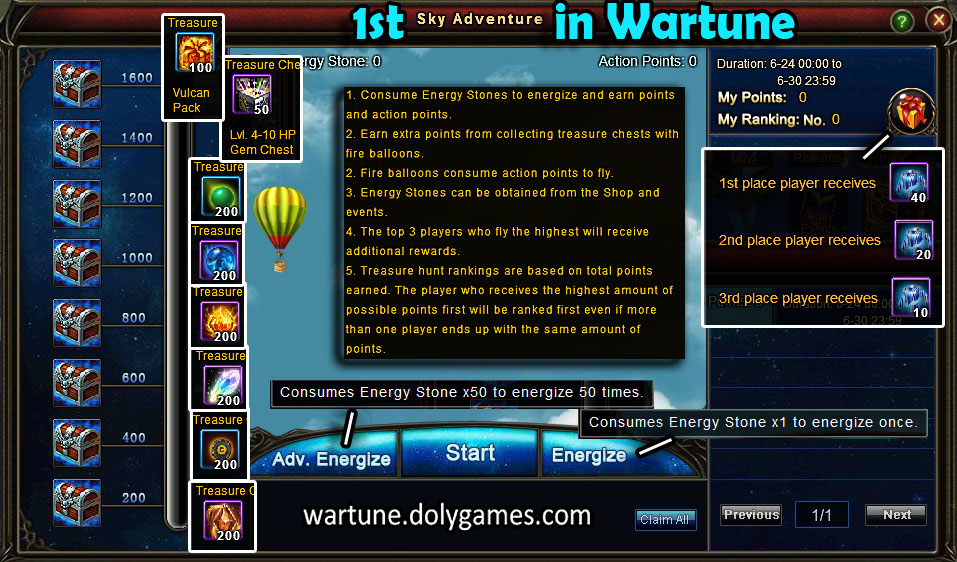 Hey guys, the 1st Sky Adventure begins in Wartune tomorrow (24th June 2015). Please find below all the information about it as well as the full-info picture I prepared. Starting with the forum post information by R2CS_Crystal and followed by the points/rewards table and the comprehensive picture: