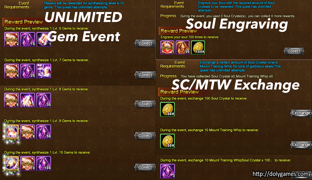 So do you think the exchange for 10 whips + 100 soul crystals is worth it for 3 soul seals? I don’t think I’m going to go for the exchange yet, but everything else looks very appealing. Those of you that waiting out for an unlimited event with level 9 and 10 gems will make out like bandits here!