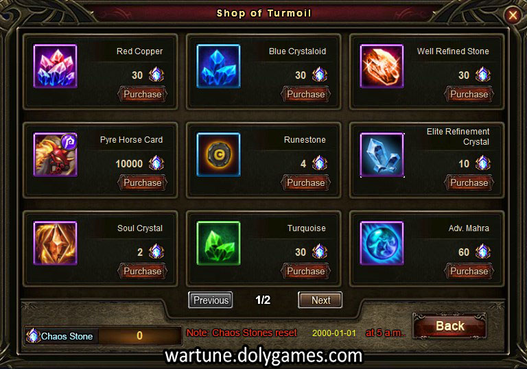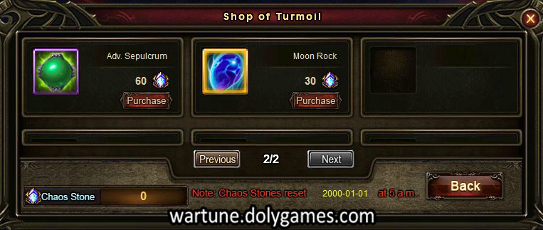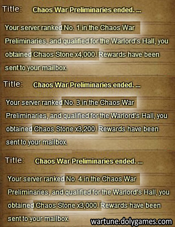 - Participating, preliminary and finals rewards contain bundles of Chaos Stones, which can be used to exchange for items in the Chaos War Shop a.k.a. Chaotic Shop a.k.a. Shop of Turmoil.