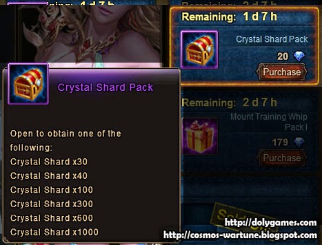 Let us explore the cost for each of these sources – the assumption here is that the player wants to obtain a large number of resistance crystals in a relatively short period of time, so for Treasure Hunt, I will only consider Orange/Gold Treasure Hunt.