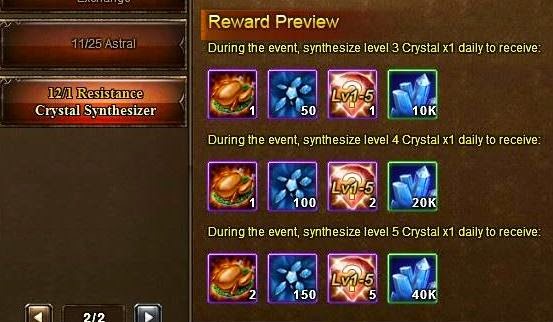Purchasing the Hot Event chests, the 150 Balens give you 5.96 Level 1 Resistance Crystals. However, you can also gain more free crystals on the same day, since you can do 5 green treasure maps, which gives you an additional 2.08 Level 1 Resistance Crystals, as calculated above. So this gives you a total of 8.04 Level 1 Resistance Crystals per day.
