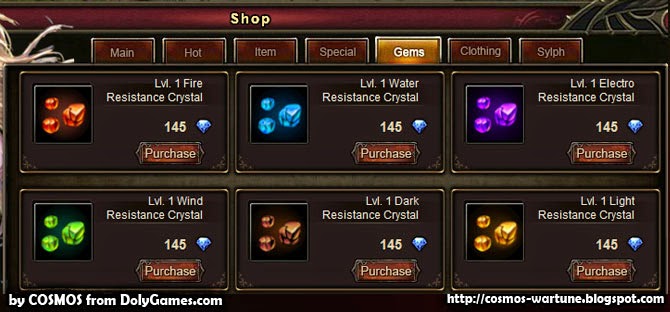 The price of a Level 1 Resistance Crystal in regular shop (on Page ‘Gems’) is 145 Balens.