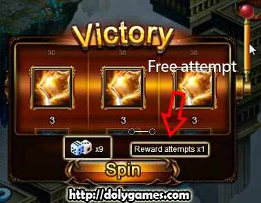 When we reach the “Finish” square, we get 1 free spin and the remaining dices will be converted into spin attempts! like shown in the screen shot below :