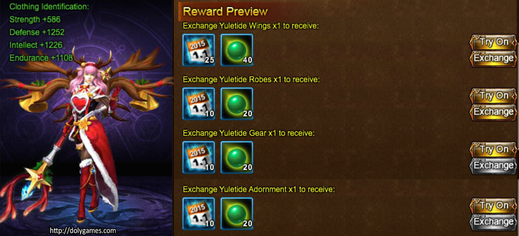 Hey you guys, in this new set of events we can exchange the Yuletide clothing set for additional 1st Day Calendar Pages and sepulcrum. If you have a lot of spare level 1 clothing, you can consider converting some of them into the Yuletide items, and they are able to be exchanged!