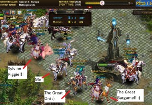 Check out a cool photo I took from our Guild Battle vs. Mummies. We are standing in the enemy territory after taking full control of the area and I think this is also the first time we are having the mount “Piggie” – its a very strange one 🙂 some people love it, others hate it 🙂