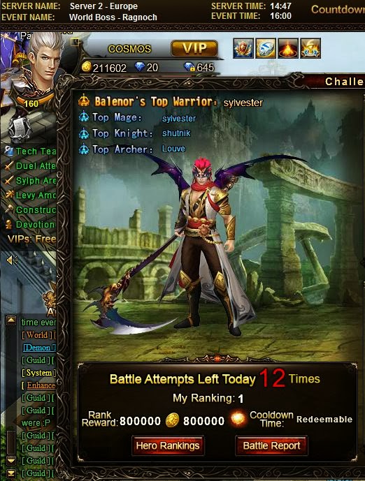 Hey guys, small victory dance for me in Wartune as I reach Solo Arena Rank #1 on my server which is the first time ever for me. No pots, scrolls or anything naughty like that 🙂 Before my highest was rank 3 i think, but could not break into the rank 1, but today that job is done and one of the things you can see is wooot 800k gold and 800k daru every 3 days for the top ranked person – that’s nearly 7 times more than the average player.