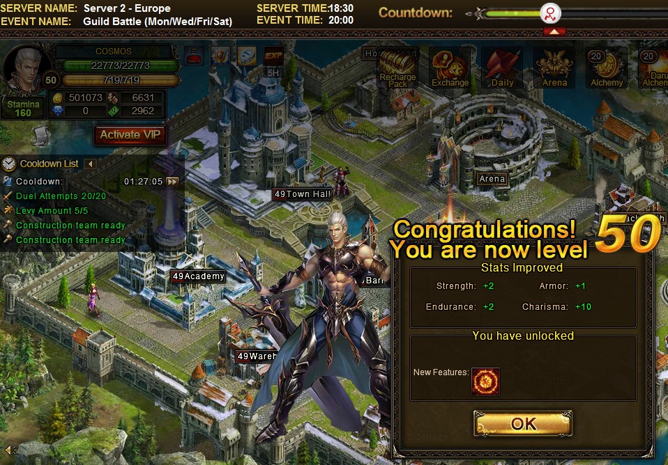 I became level 50 Knight today! Finally! This is a big milestone so party-time in Wartune!!!
