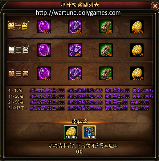 The player that is ranked at 60 will receive the following items after Gods Decent ends: