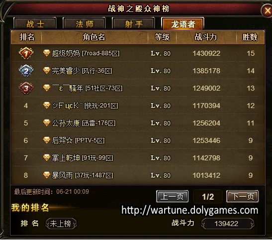 In Chinese Wartune, not much participate in the Class Wars as a sub class because their sub class is weak. Most of the top players in Chinese Wartune continue to participate in the Class Wars because their toon is strong enough to make it to finals. This is the rankings for the sub class in class wars from a server where players are reaching 5 million battle rating.