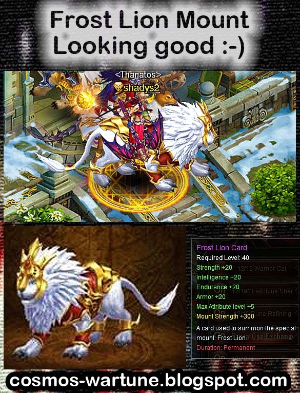 Hey guys, in the Christmas Santa Caps event we (or cashers to be more accurate) have the possibility to get the Frost Lion Mount and I stumbled onto one of them when I was walking around and I thought “Hey, that mount looks really nice” 🙂