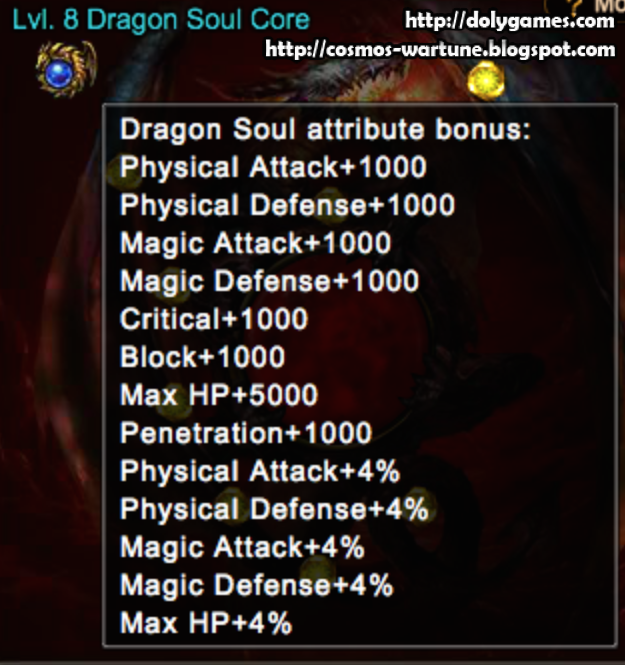The Dragon Soul System added new percentage bonuses. So far I can’t get any more until they release more ways to use Dragon essences. These ones aren’t huge though and will not vary the results as much as the hero/sylph passive skills.