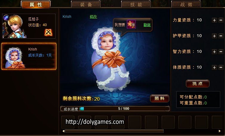 To get a baby (it will eventually become a kid) you need to go to the Kids/Guardians NPC called Divine Governess. Once you go to the NPC and consume 5 Million Gold to get a baby, you will have to wait 24 Hours to get the baby in the Kids Tab.