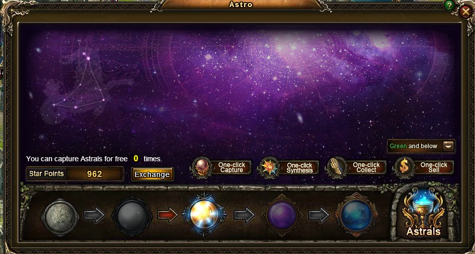 The first step to doing this was to accumulate trials. So everytime that I went through the motions of clicking on those little orbs to capture astrals, I would keep track of how much gold I started with, and how much I ended with, along with how many star points I gained from that run. As a note, I was selling green and below and feeding blue and above.
