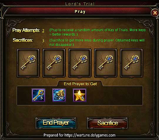 • 5 Cards = 5 Keys of Trials + 20 Cast Stones Lord's Trial Cast Stone icon Wartune + 5 Star Crystals