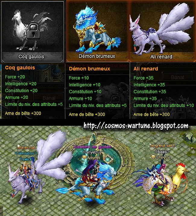 Hey guys, here I have some info shared by our French Wartune friend Gaetan of mounts which are already available in the French version, which we do not have in the “Western” version of Wartune. Probably sooner or later we will get them, but we wanted to share this with everyone, so put in the comments which one of the 3 is your favorite one – mine is the Chicken/Cock Mount and Fox as #2 after that 🙂
