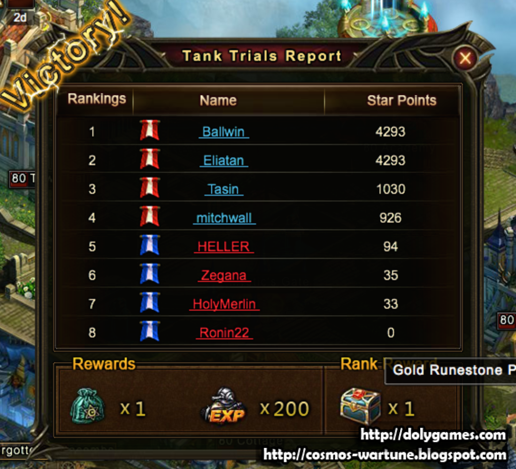 I got second place and the gold (instead of diamond chest). I don’t know what the tie-breaker is. Alphabetical order? He made the room so maybe order of joining the party? Maybe I’m just too sexy for Wartune (*adjusts glasses* … *double victory signs*).
