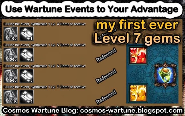 Hey guys, so I want to talk to you about using Wartune events to your advantage and maybe also not being afraid a little. Recently we had a 3 day event about upgrading gems and I must say I always fell into the trap of only synthesizing gems from my bag and usually I didn’t have enough for those high level 6 and level 7 gems. Level 6 I could make sometimes, but forget level 7, I never even considered that. Until….