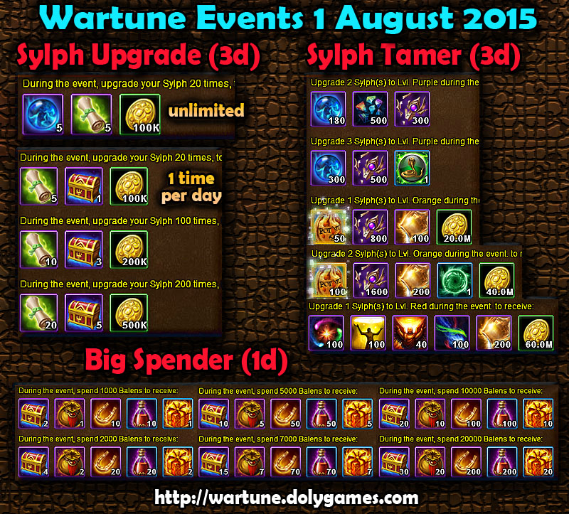 Hey guys, here are the Wartune Events 1 August 2015:
