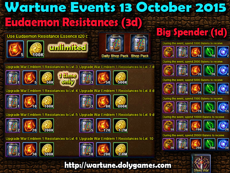 Hey guys, here are the Wartune Events 30 October 2015: Just a recharge giving bound balen rewards, And the 1 day big spender. Wartune Events 30 October 2015
