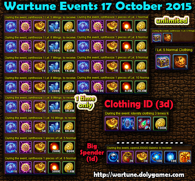 Hey guys, here are the Wartune Events 17 October 2015: