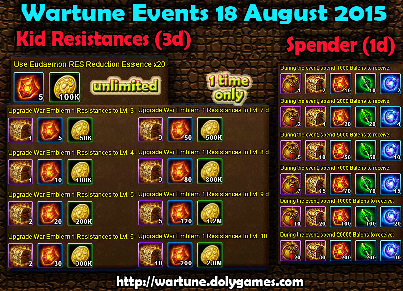 Hey guys, here are the Wartune Events 18 August 2015:
