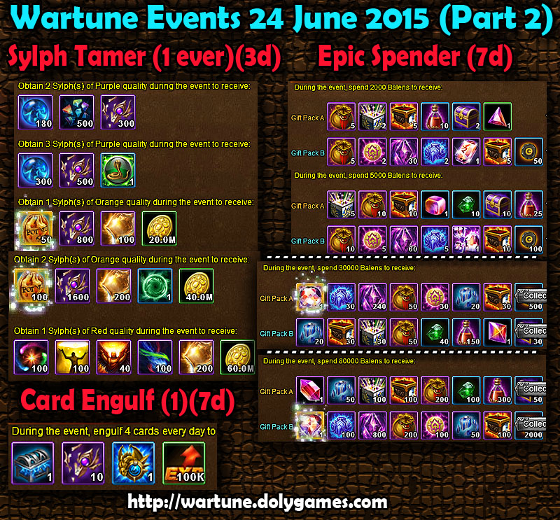 Hey guys, here are the Wartune Events 24 May 2015: War Emblem upgrade, Refine Sylph Equipment and Big Spender: