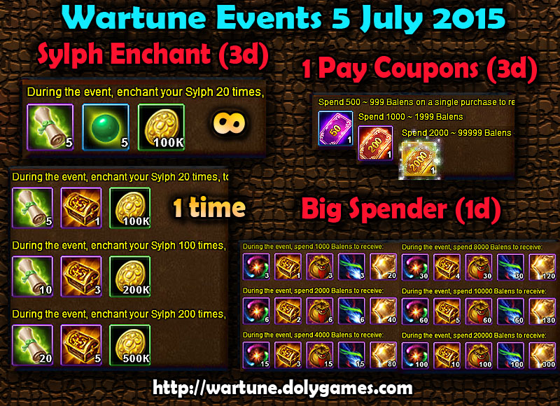 Sylph Enchant (unlimited and 1 time), Single Purchase Discount Coupons and the traditional Big Spender 1 day