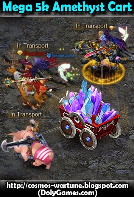 Hey guys, check it out, you can get together with 3 friends and get a mega cart for the Amethyst Mine collection of amethyst crystals. This cart is awesome! It can carry 5,000 amethyst crystals per person during the double time 21:00 server time.