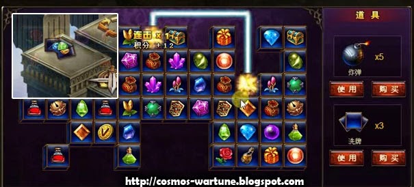 On one of the game board locations (I show that on top left on the picture) you initiate another mini game of cards / icon where you have to match the same type to get the rewards.