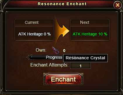 - Select a slot and use Resonance Crystals to improve its level. The higher the Resonance slot level, the higher the stats heritage rate.