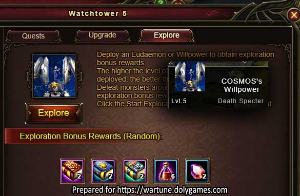 In Wartune Patch 7.8 the Exploration mini-feature was added inside the Eudaemon Patrol where also the Bounty Targets were integrated into the new Bounty Spots. I already wrote a REFERENCE article showing all the rewards that are possible using all levels of Eudaemons and all levels of Willpowers. If you have not seen that article please refer to it here.